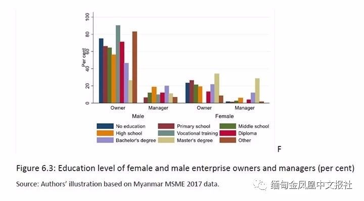 圖說:中小企業(yè)管理人員受教育水平及性別(來源:2017緬甸中小企業(yè)環(huán)境調查)。