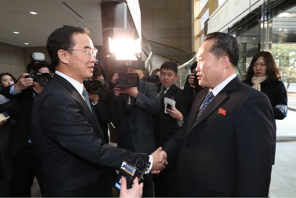 當(dāng)?shù)貢r(shí)間2018年1月9日,韓國(guó)和朝鮮代表在板門店韓方一側(cè)“和平之家”舉行韓朝高級(jí)別會(huì)談,就朝方派代表團(tuán)參加平昌冬奧會(huì)、南北關(guān)系改善等共同關(guān)心的問題進(jìn)行討論。這是時(shí)隔兩年多之后,韓朝雙方再次實(shí)現(xiàn)高級(jí)別對(duì)話。