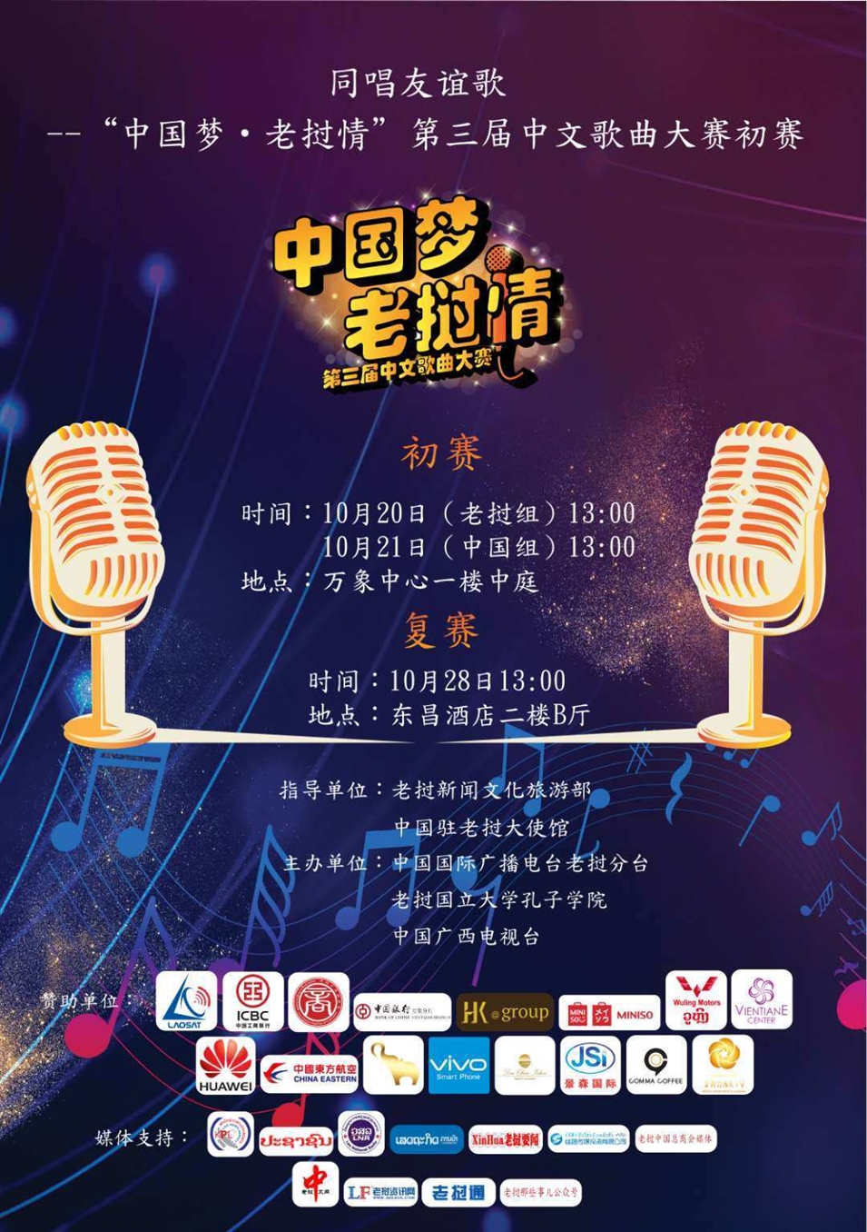 “中國夢·老撾情”第三屆中文歌曲大賽正在如火如荼地進(jìn)行,經(jīng)過10月20日、10月21日激烈的初賽角逐,中國組、老撾組分別有15名選手進(jìn)入復(fù)賽。