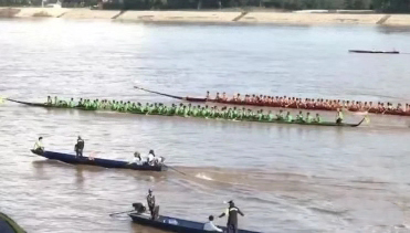 龍舟賽作為開門節(jié)的盛大活動(dòng)之一,歷來受到廣泛關(guān)注。今年雖然因老撾各種災(zāi)禍頻發(fā)受到一定程度的影響,只有7支男子隊(duì),5支女子隊(duì)報(bào)名參加,但場(chǎng)面還是熱鬧非凡。